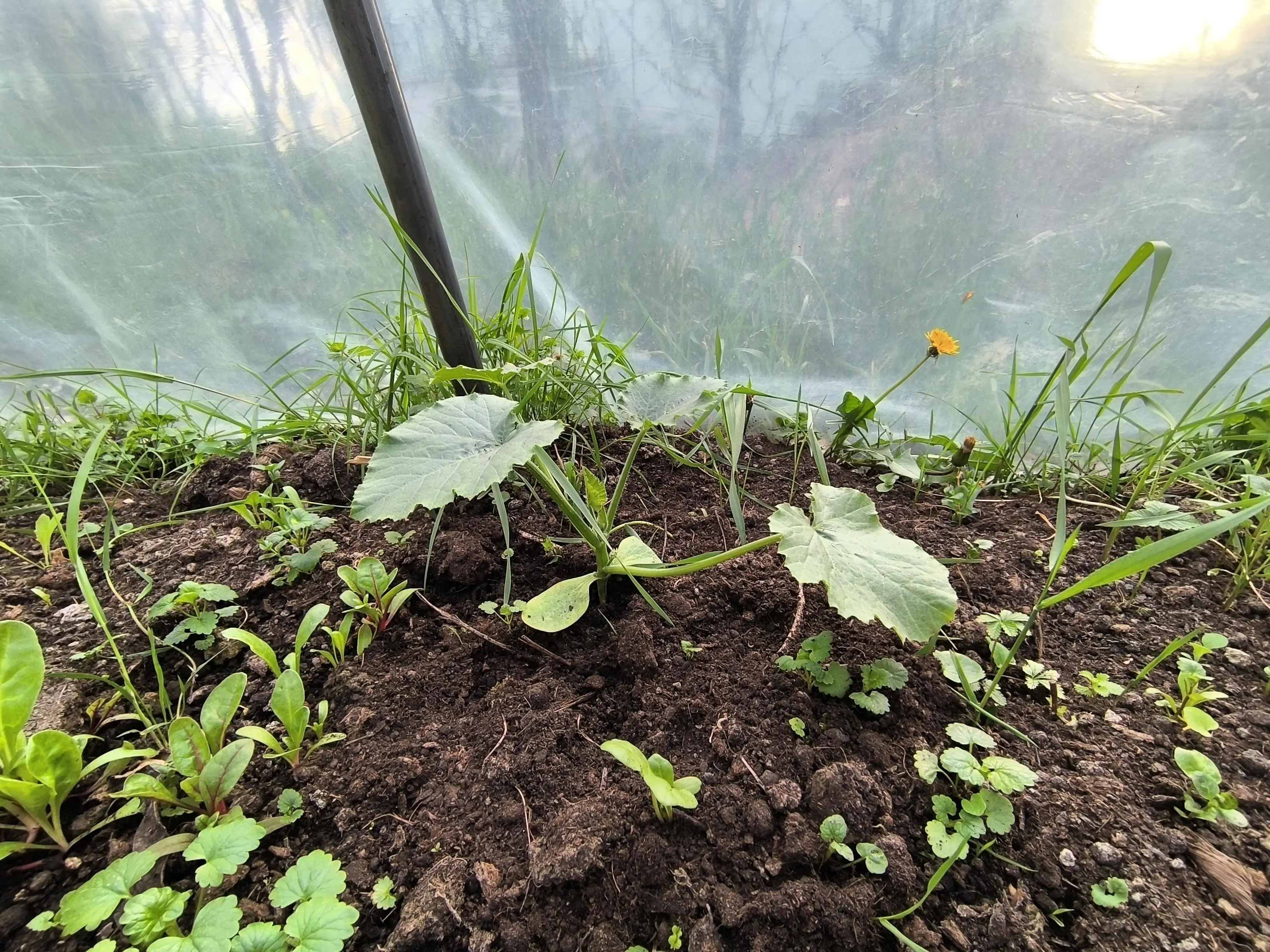 Greenhouse update!Everything looks great. Radish and lettuce can be picked, and we also have something new - zucchini!